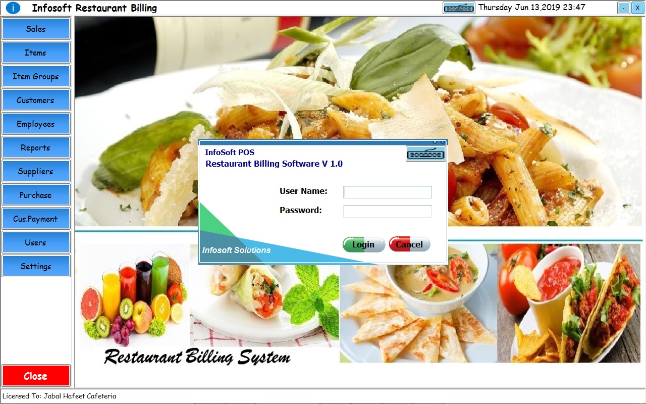 Infosoft Restaurant Billing System is a simple and user friendly application to automate the operation of restaurants and cafes. It's equipped with POS features, simple configuration methods and sales analysis reports.